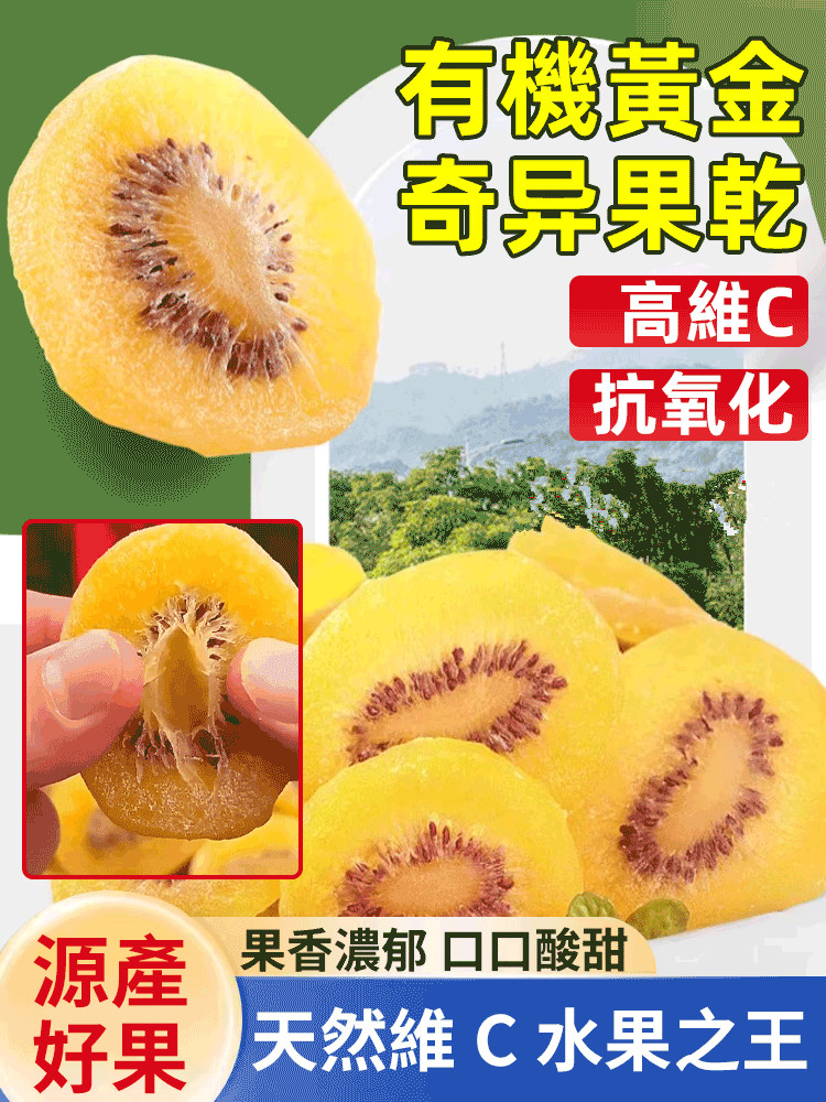 有機黃獼猴桃果乾【陽光濃縮 營養爆發】 一口吃進整顆維他命C!非油炸低溫烘培,鎖住營養,無添加糖\防腐劑,孕媽寶寶都能吃!
