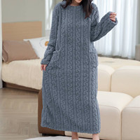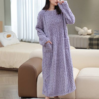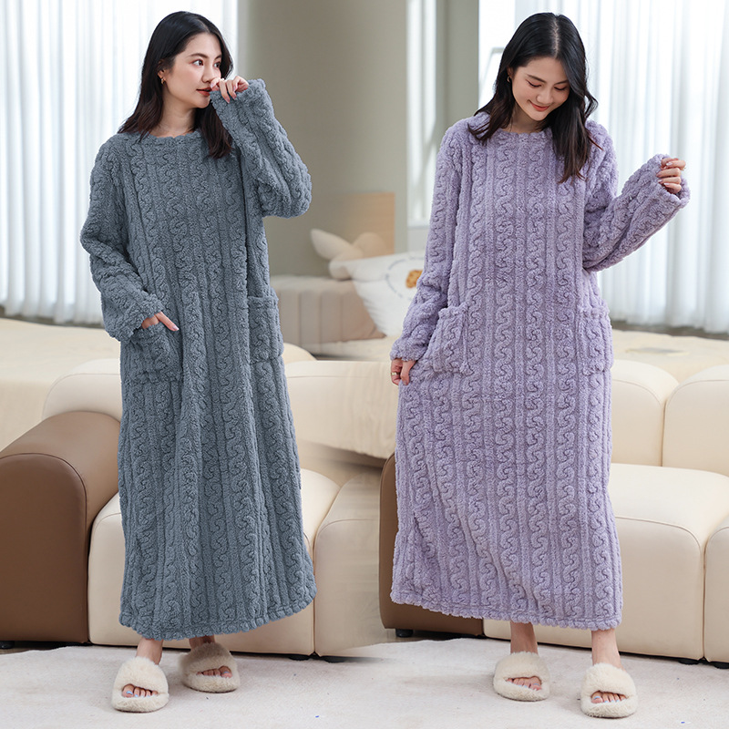 冬天必備珊瑚絨長睡裙 加厚珊瑚絨,吸水超快乾 長版設計 保暖不灌風 親膚材質 像雲朵般柔軟