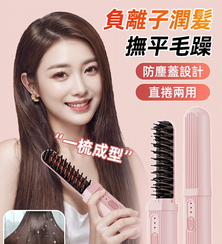 【乾濕兩用】新款負離子無線膠囊直髮梳2.0!隨時打造柔亮美髮!負離子養護,直捲自如不損髮!速熱技術,瞬間塑造絲滑髮型!直髮、波浪、內扣,百變造型隨心所欲!一梳在手,自信美髮輕鬆擁有!