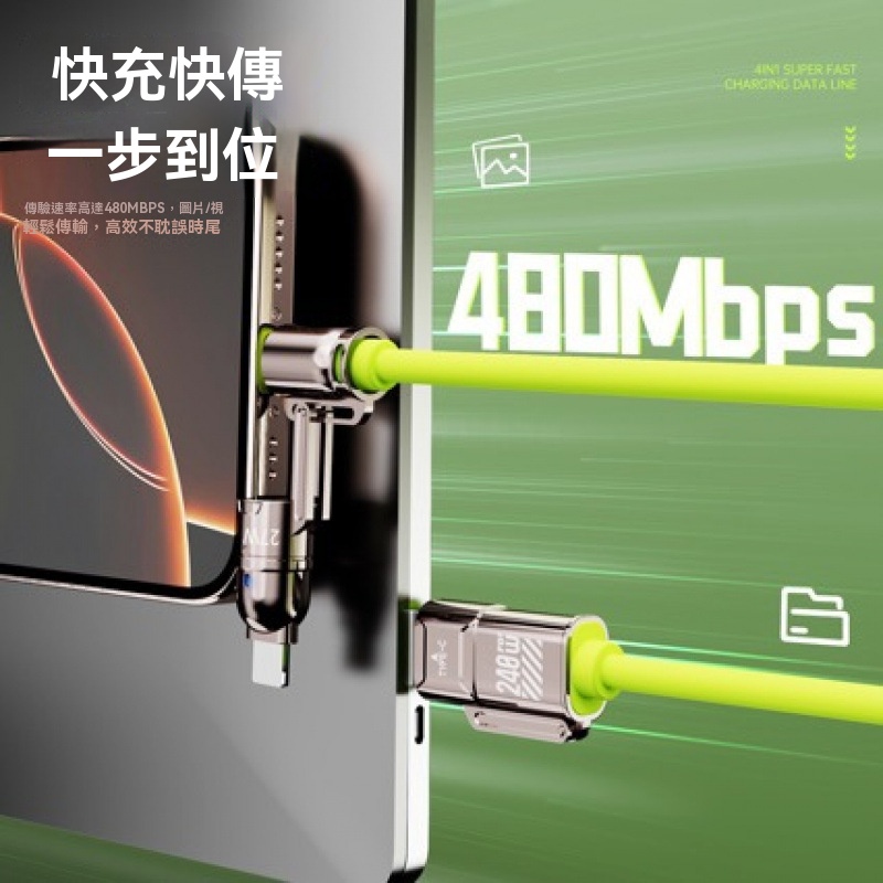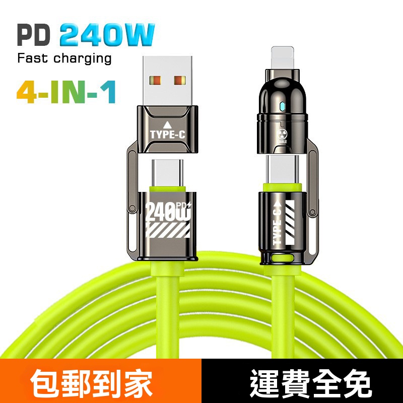 240W四合一數據線雙type-c適用蘋果7-16華為手機PD快充二 拖二充電